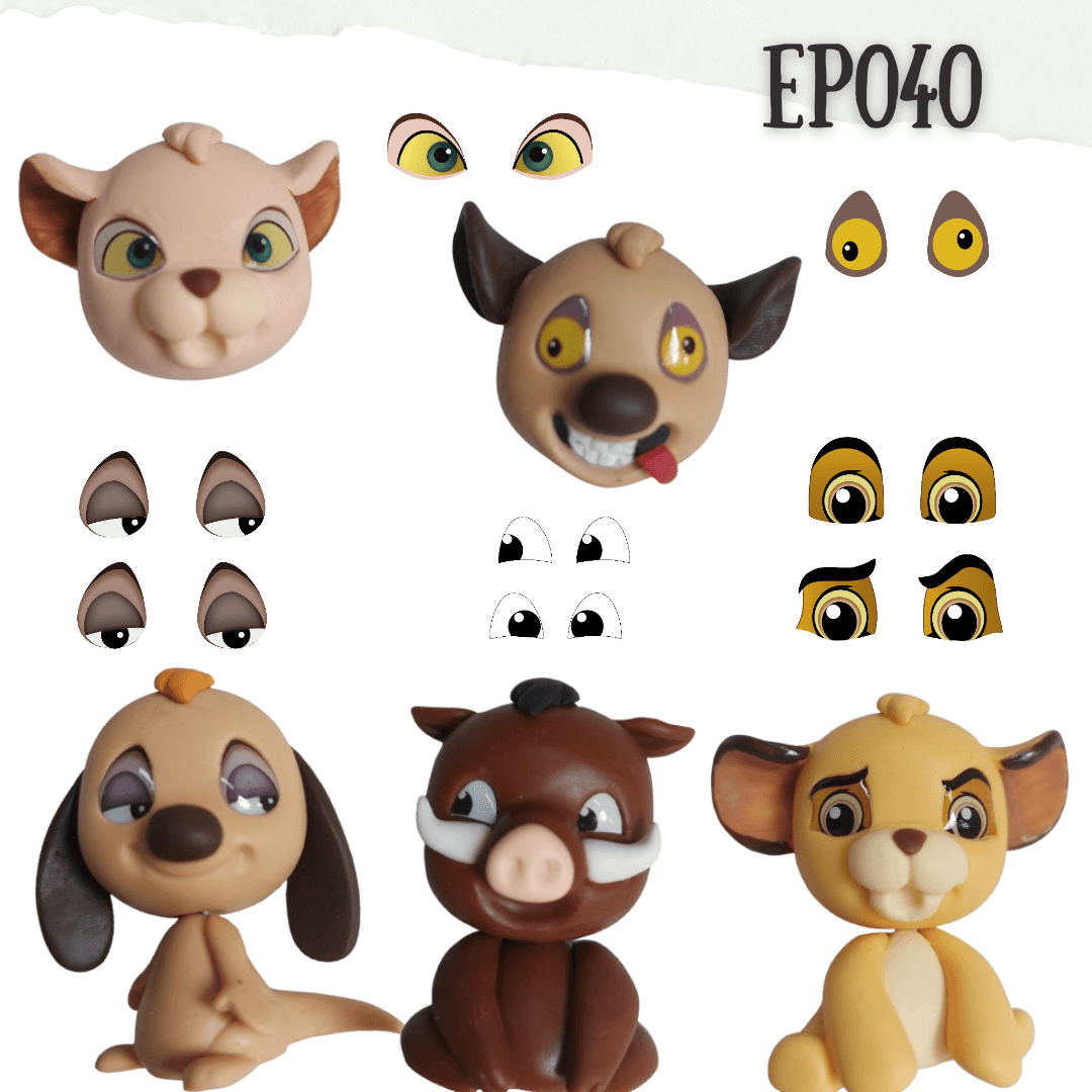 Olhos Adesivos Resinado EP040 - Cartela Mista com olhos do Leão, Suricato, Javali, Hiena e Leoa